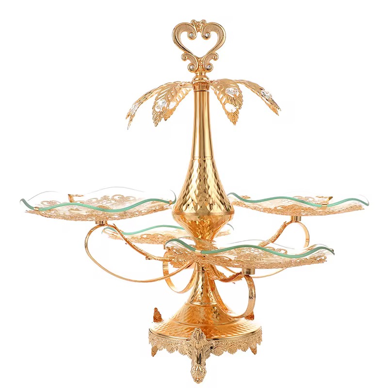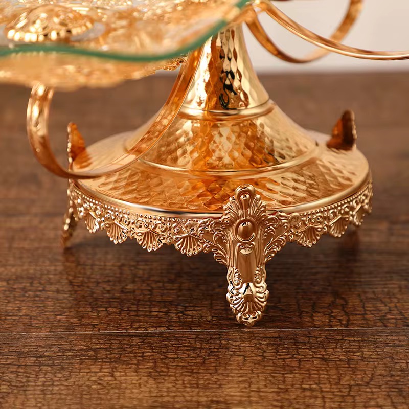 Craft Carving Rotating Dried Fruit Box Fruit Platter Wedding Handheld Gold Fruit Basket